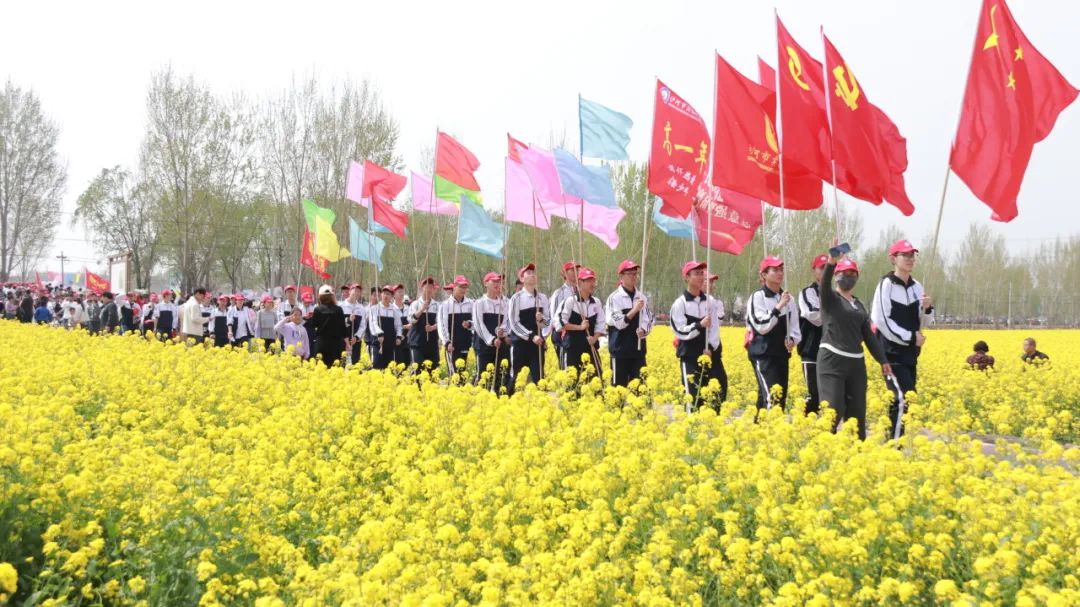 参加本次活动师生家长共计1000余人,由沙河市实验中学出发,徒步至金沙河红薯岭,全程40华里。